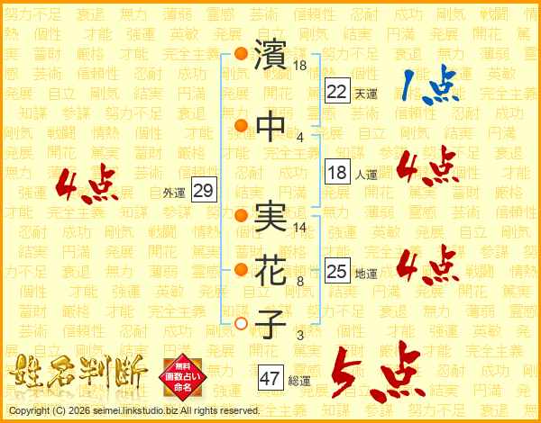 濱中実花子さんの総運は47画の5点!