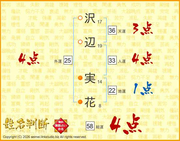 沢辺実花さんの総運は58画の4点!