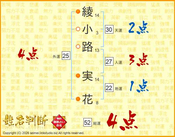 綾小路実花さんの総運は52画の4点!