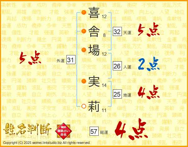 喜舎場実莉さんの総運は57画の4点!