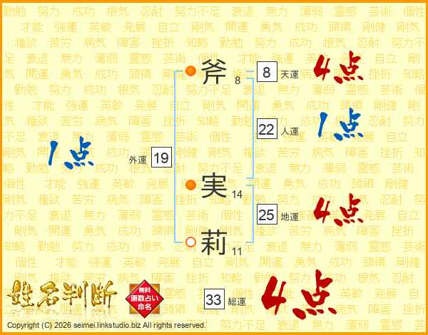 斧実莉さんの総運は33画の4点!