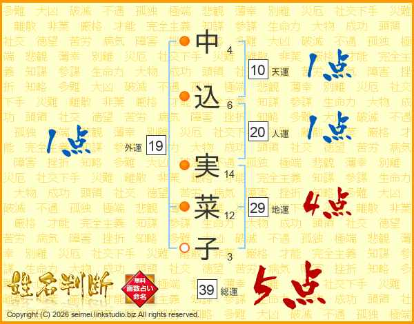 中込実菜子さんの総運は39画の5点!