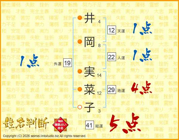 井岡実菜子さんの総運は41画の5点!