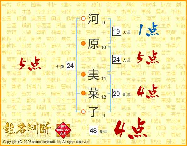 河原実菜子さんの総運は48画の4点!