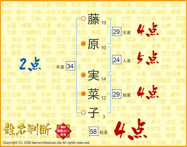 藤原実菜子さんの総運は58画の4点!