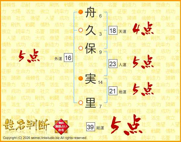 舟久保実里さんの総運は39画の5点!