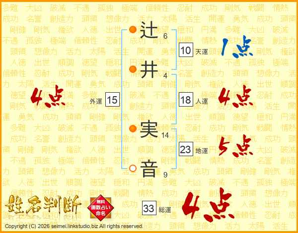 辻井実音さんの総運は33画の4点!