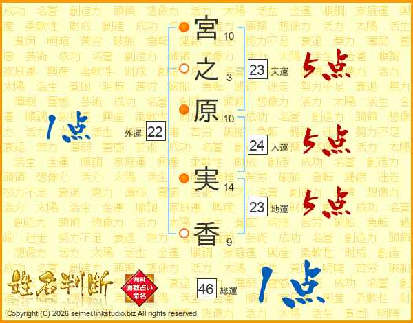 宮之原実香さんの総運は46画の1点!