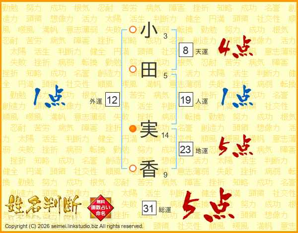 小田実香さんの総運は31画の5点!