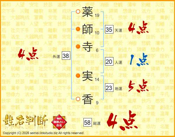 薬師寺実香さんの外運は38画の4点!