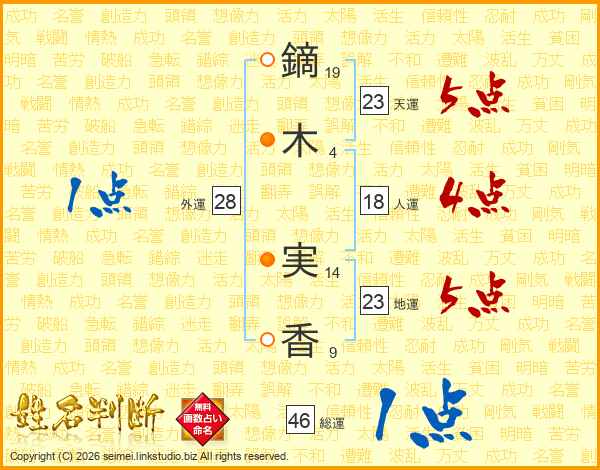 鏑木実香さんの総運は46画の1点!
