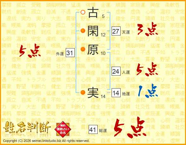 古閑原実さんの総運は41画の5点!