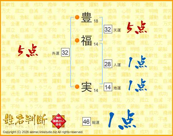 豊福実さんの総運は46画の1点!