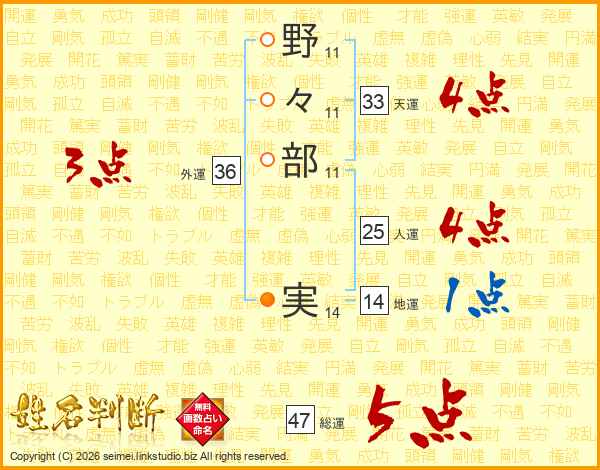 野々部実さんの総運は47画の5点!