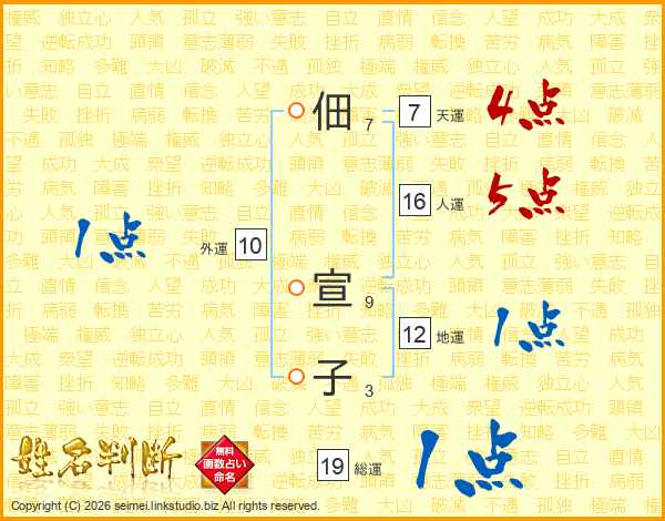 佃宣子さんの総運は19画の1点!