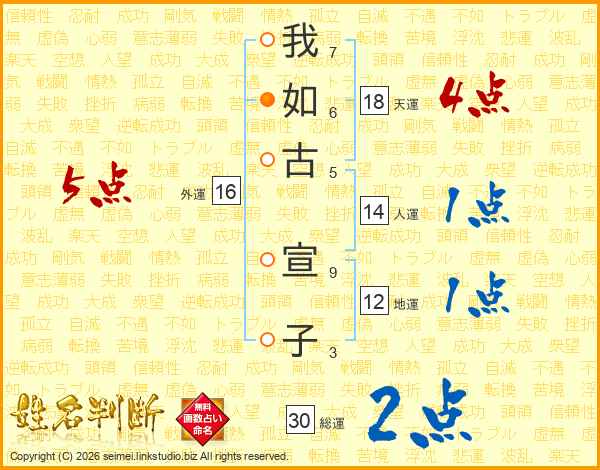 我如古宣子さんの外運は16画の5点!