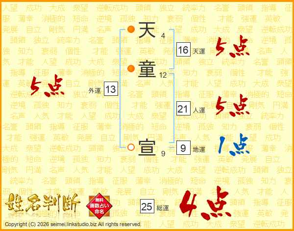 天童宣さんの総運は25画の4点!