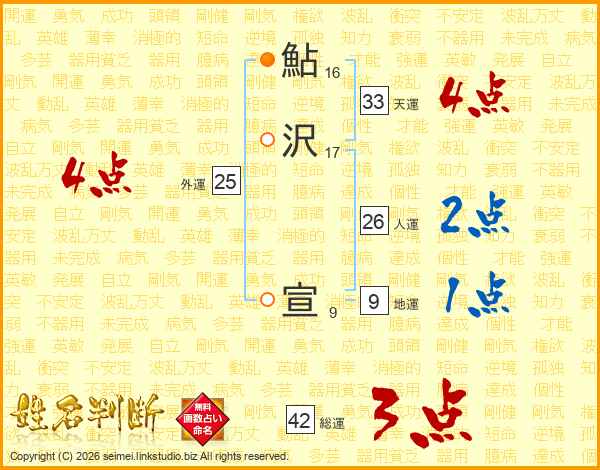 鮎沢宣さんの天運は33画の4点!
