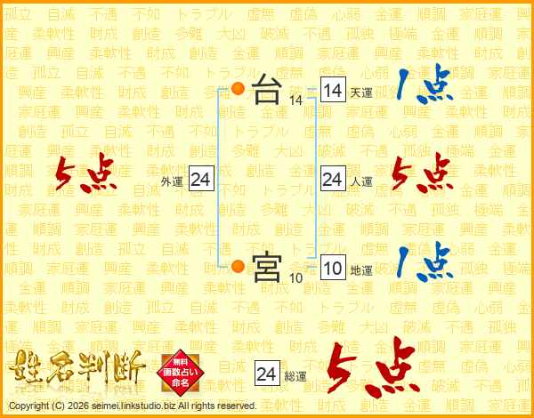 台宮さんの人運は24画の5点!