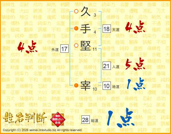 久手堅宰さんの天運は18画の4点!