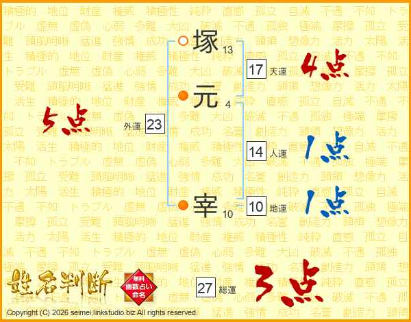 塚元宰さんの外運は23画の5点!