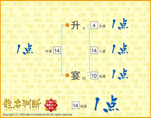 升宴さんの総運は14画の1点