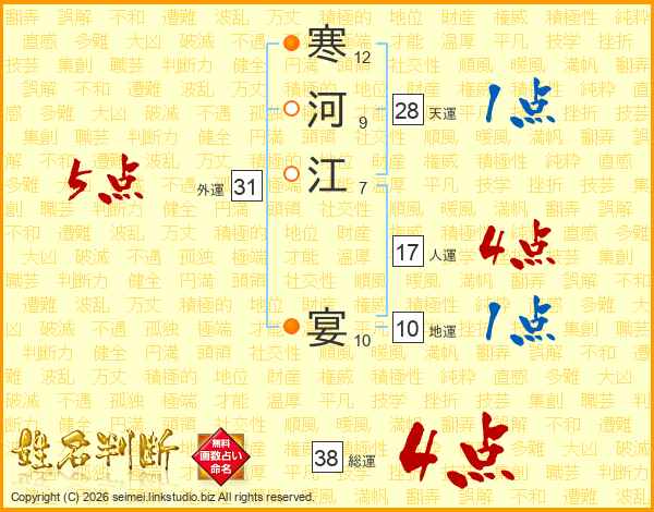 寒河江宴さんの総運は38画の4点!