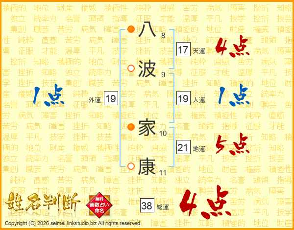 八波家康さんの総運は38画の4点!