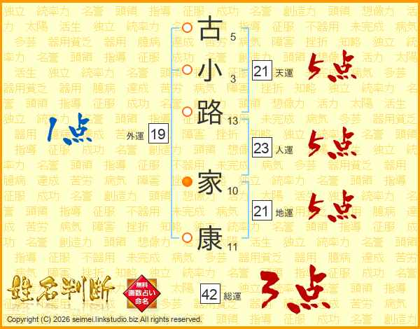 古(5画)小(3画)路(13画) 家(10画)康(11画)