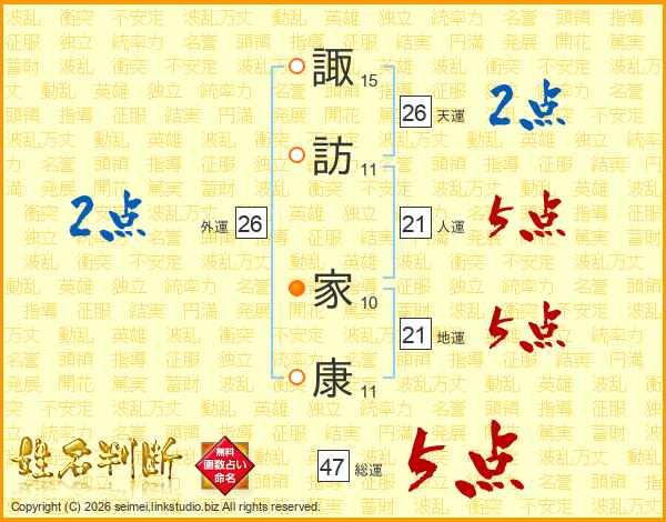 諏訪家康さんの総運は47画の5点!