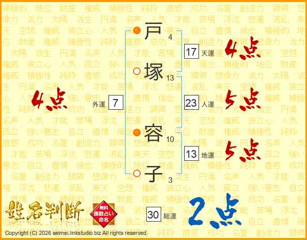 戸塚容子さんの総運は30画の2点!
