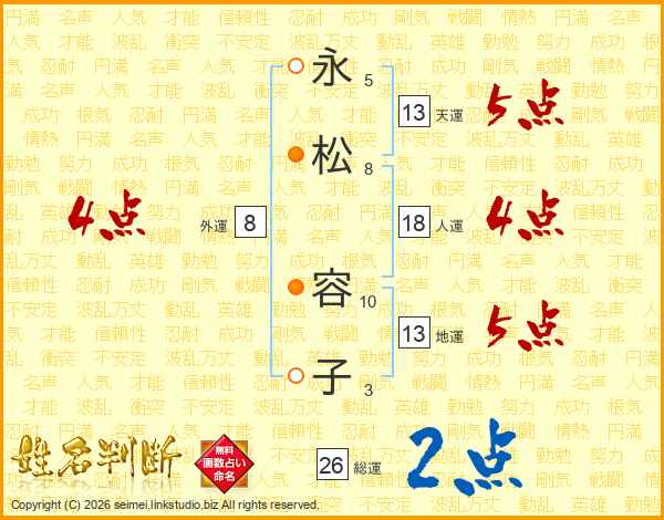 永(5画)松(8画) 容(10画)子(3画)