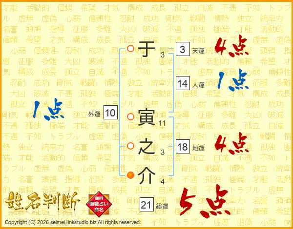 于寅之介さんの総運は21画の5点!
