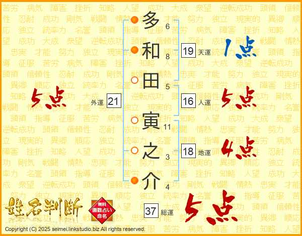 多和田寅之介さんの総運は37画の5点!