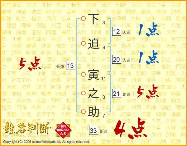 下迫寅之助さんの総運は33画の4点!