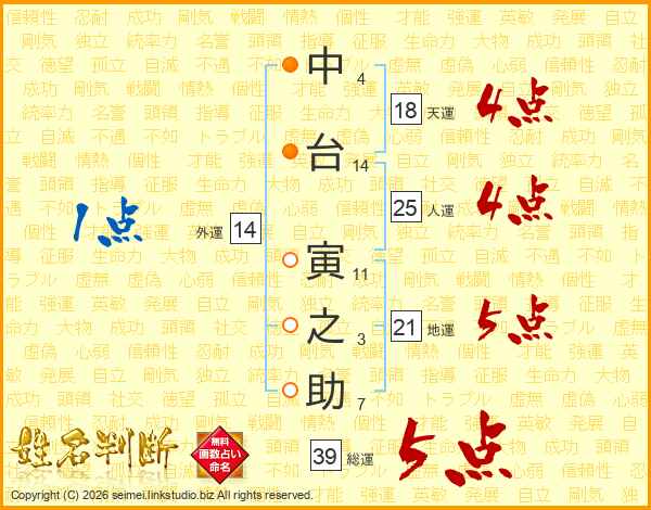 中台寅之助さんの総運は39画の5点!