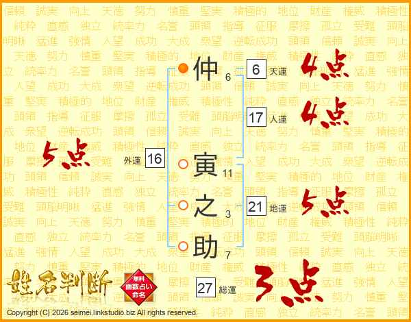 仲(6画) 寅(11画)之(3画)助(7画)