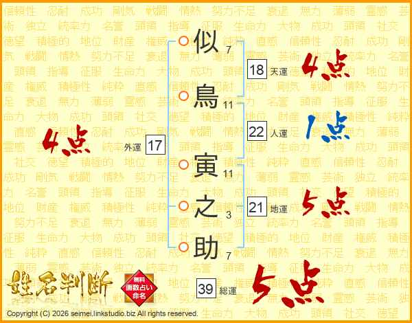 似鳥寅之助さんの総運は39画の5点!