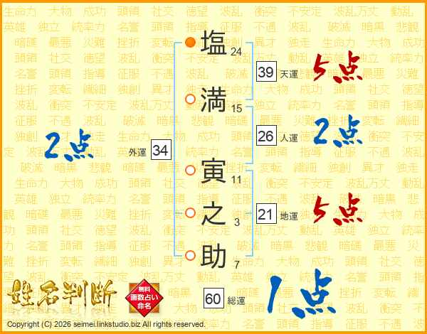 塩満寅之助さんの総運は60画の1点!