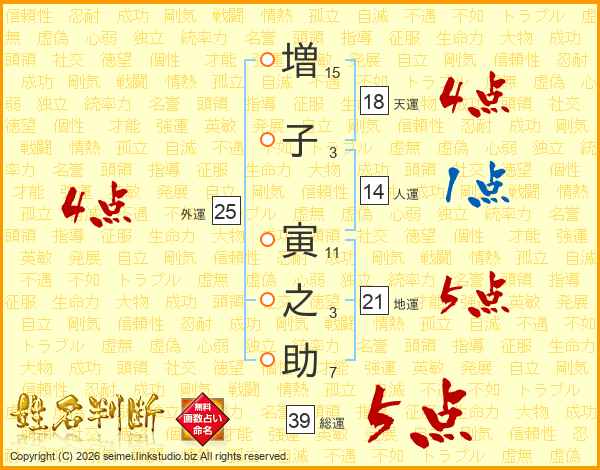 増(15画)子(3画) 寅(11画)之(3画)助(7画)