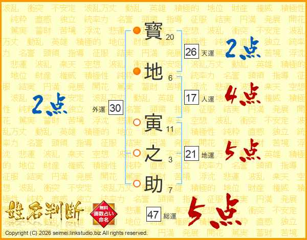 寳(20画)地(6画) 寅(11画)之(3画)助(7画)