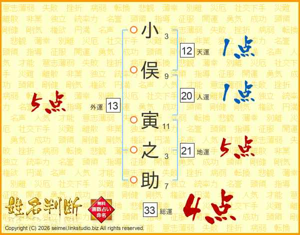 小俣寅之助さんの総運は33画の4点!