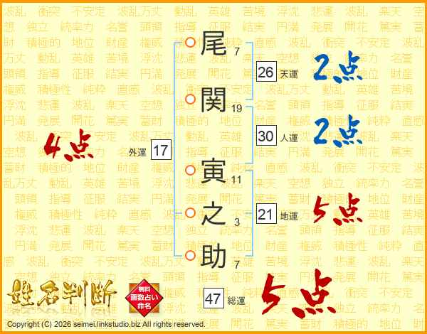尾関寅之助さんの総運は47画の5点!