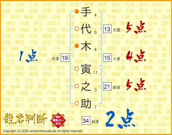 手代木寅之助さんの人運は15画の4点!