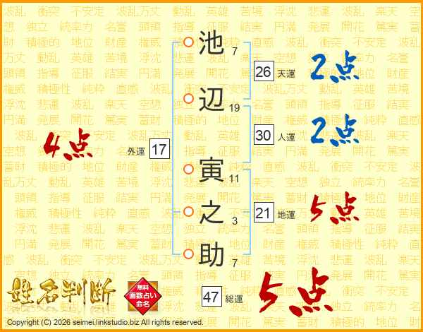 池辺寅之助さんの総運は47画の5点!