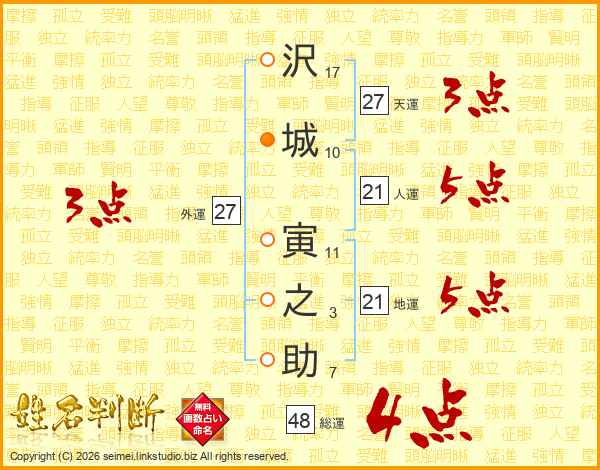 沢(17画)城(10画) 寅(11画)之(3画)助(7画)
