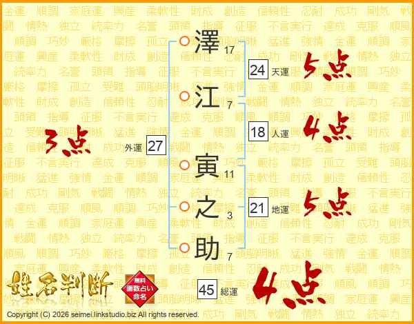 澤江寅之助さんの総運は45画の4点!