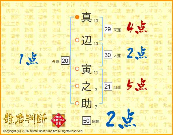 真(10画)辺(19画) 寅(11画)之(3画)助(7画)