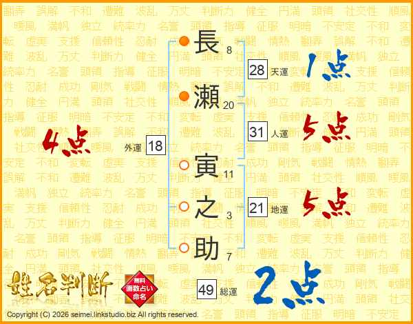 長瀬寅之助さんの人運は31画の5点!