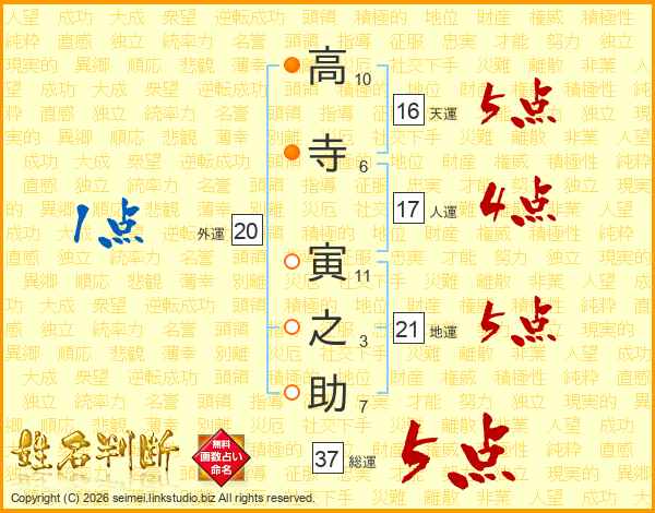 高(10画)寺(6画) 寅(11画)之(3画)助(7画)